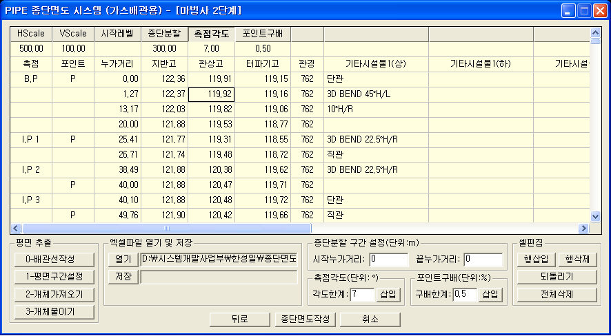 GIS 측량 데이터를 이용하여 자동으로 배관 종단면도를 손쉽게 작성하고 절대좌표계 사용으로