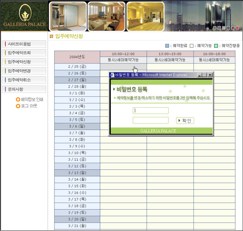 - 계약사 정보를 통한 인증철차를 거쳐 온라인 입주예약 실시