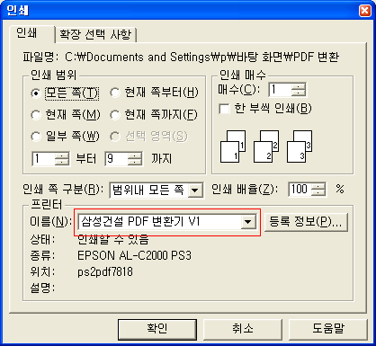 해당 어플리케이션 프로그램에서 파일을 열어, 인쇄를 보내는 절차에서 PDF변환기를 선택하여, 인쇄를 누르면 원하는 폴더경로에 PDF화일로 저장된다.