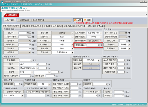 주택 개산견적 시스템으로 주상복합 PJT의 입찰견적 등 전반적인 개산견적 업무 범위를 포함하고