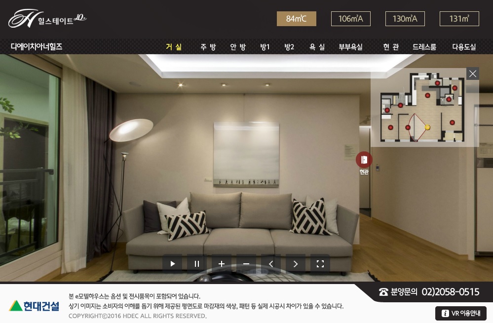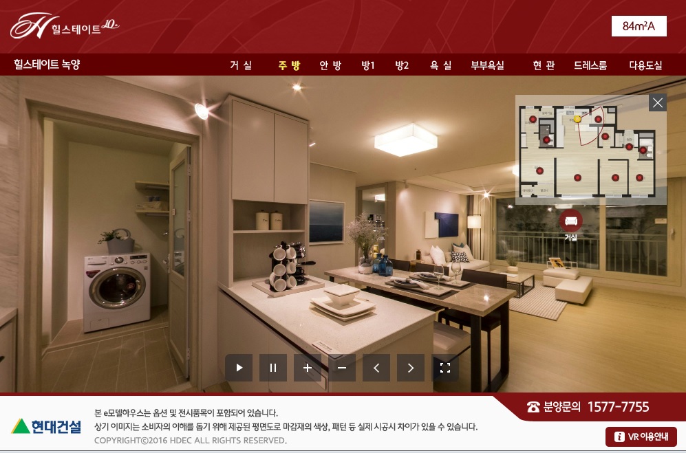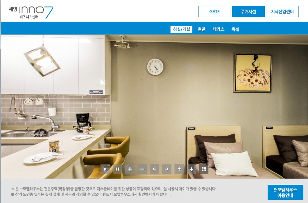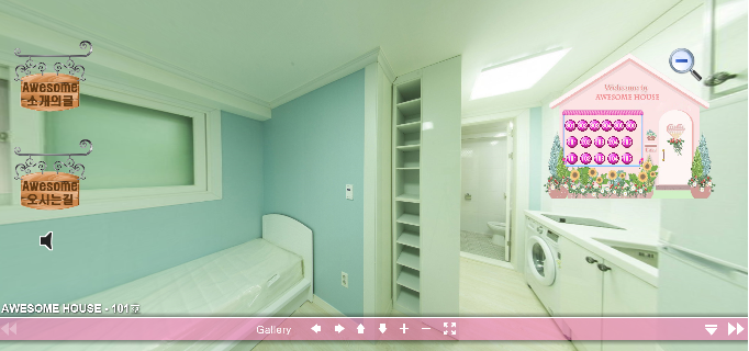 VR파노라마의 대표적인 예로써, 가상체험을 위한 최적화 된 인터페이스 스킨으로 제작해 드립니다.